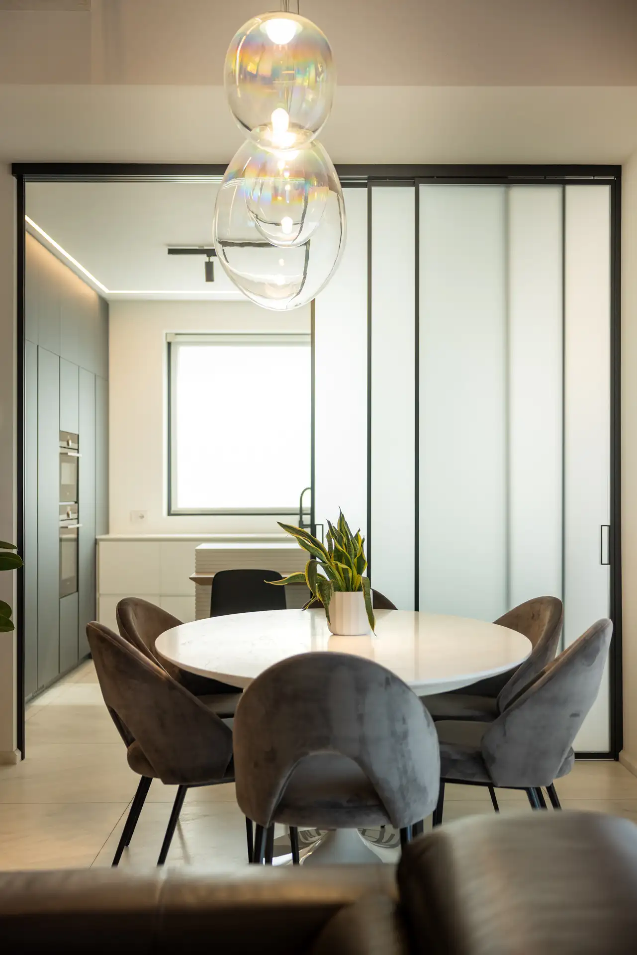 Ogni elemento, dal più strutturale al più decorativo, è stato pensato per creare un ambiente luminoso, minimale, ma ricco di dettagli funzionali e raffinati, in cui la materia e la luce si fondono in un perfetto equilibrio estetico.